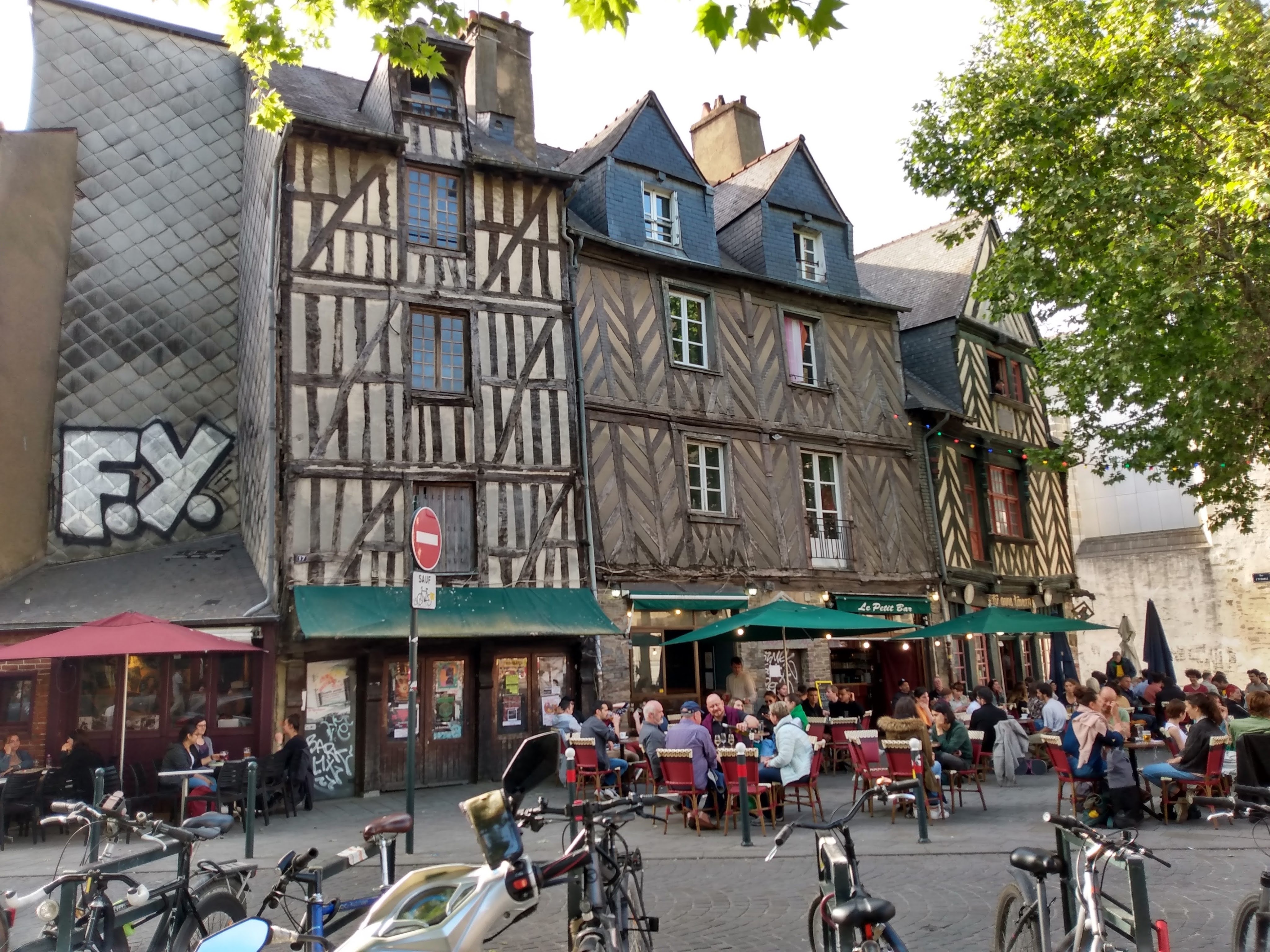 Then to Rennes for two nights, with one of the largest collection of medieval buildings in regular use. Well, most of the buildings. The station is brand new & fine, ‘organic’ architecture.
