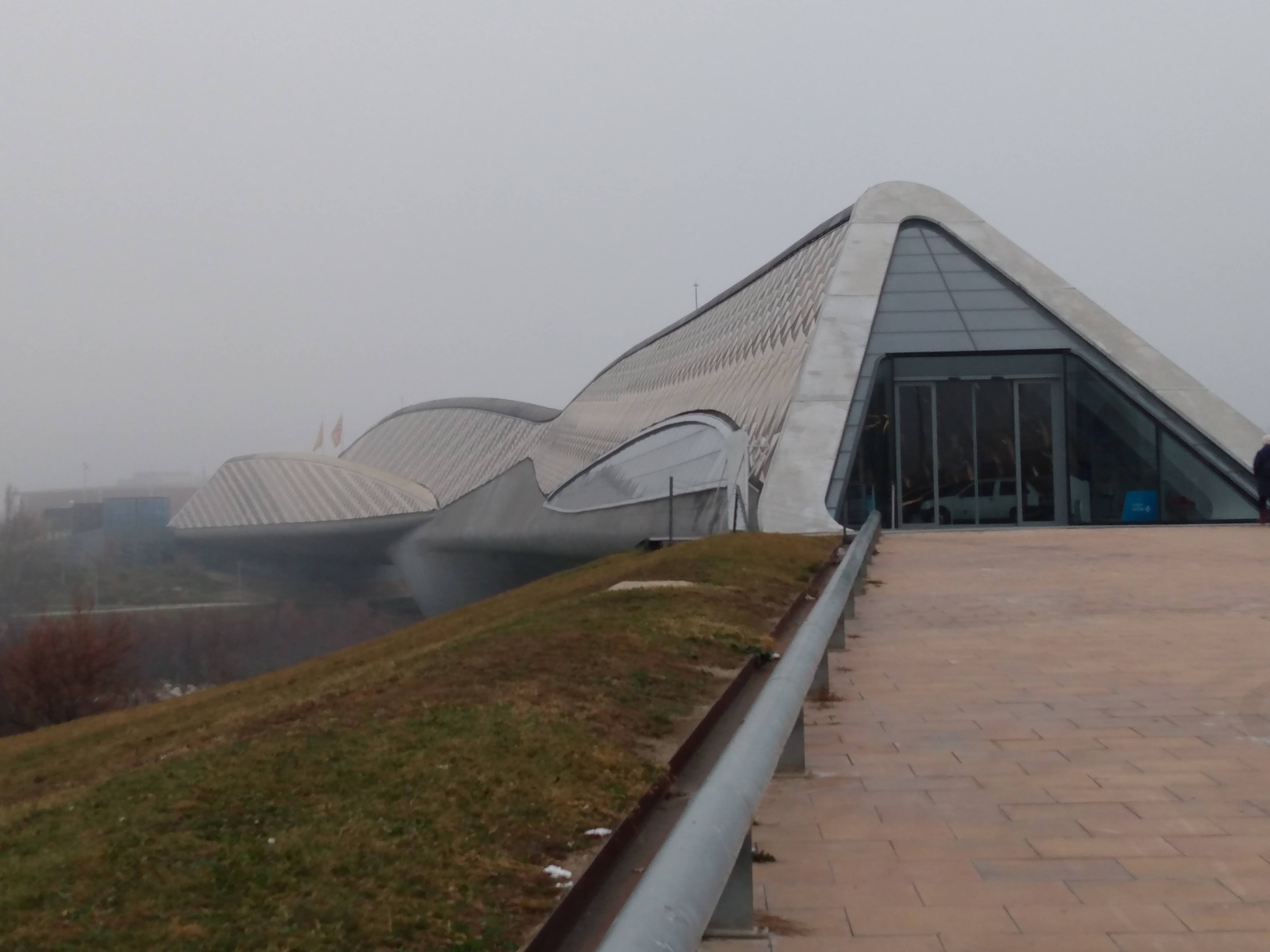 Kath suffering today. Managed to walk upriver to Zaragoza Expo, from 2006, Zaha Hadid bridge of work/living space – a horizontal version of Le Corbusier’s vertical city to the sky in Marseilles.