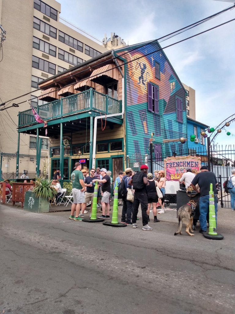 After much walking around on our second NOLA (New Orleans Louisiana, not sure where any other NOs are) day, we visited the Jazz Museum; good supporting info about jazz & NOLA’s favourite child, Louis Armstrong. Then a night in Frenchman Street, on the eastern edge of the French Quarter, the best of that area’s live music streets. Saw three different bands, with different jazz offerings, all excellent. One of the best venues was The Spotted Cat, as below.